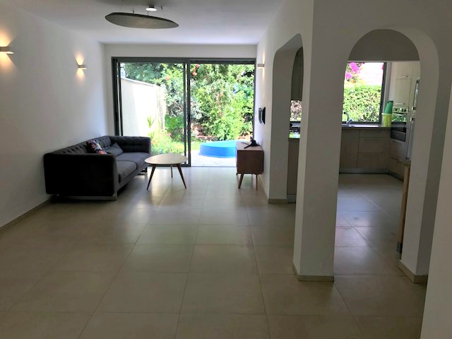 For rent a renovated corner cottage with a green garden, living room, fully equipped kitchen, 3 bedrooms for children and a spacious master bedroom in the attic. Close to a quiet public garden and walking distance from the commercial center, Nof Yam school and the beach of Herzliya Pituach. A winning location suitable for a family with children. For immediate long-term rent.